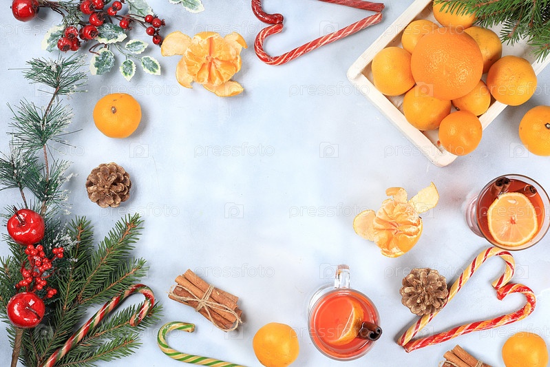 Алкогольный коктейль с апельсином и корицей, глинтвейн, рождественский праздничный грог, зимняя композиция, крепкий алкогольный или безалкогольный согревающий зимний напиток в холодное время года, выборочный фокус
