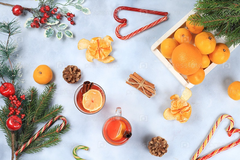Алкогольный коктейль с апельсином и корицей, глинтвейн, рождественский праздничный грог, зимняя композиция, крепкий алкогольный или безалкогольный согревающий зимний напиток в холодное время года, выборочный фокус