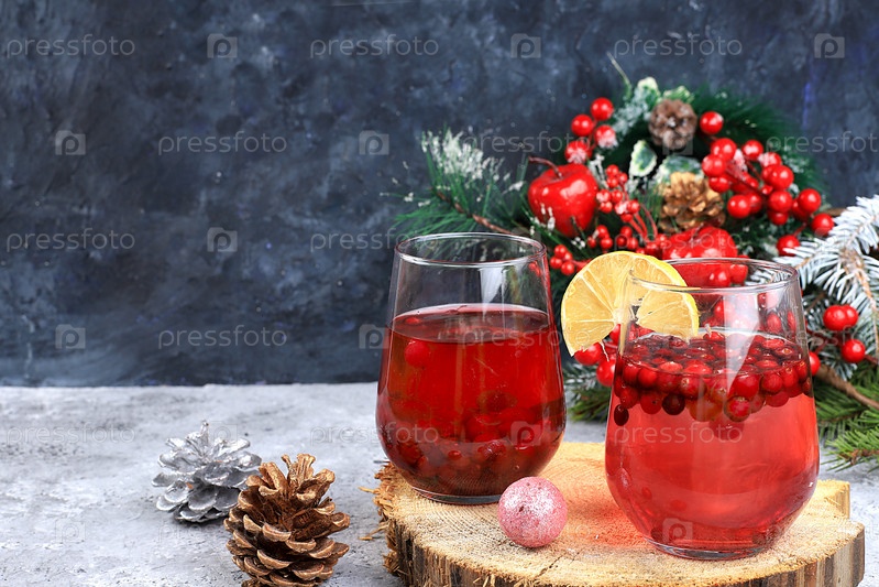 Алкогольный или безалкогольный коктейль из мандаринов, апельсинов, яблок и корицы со специями, глинтвейн, согревающий зимний напиток в холодное время года, рождественский праздничный грог, зимняя композиция с украшениями, место для текста