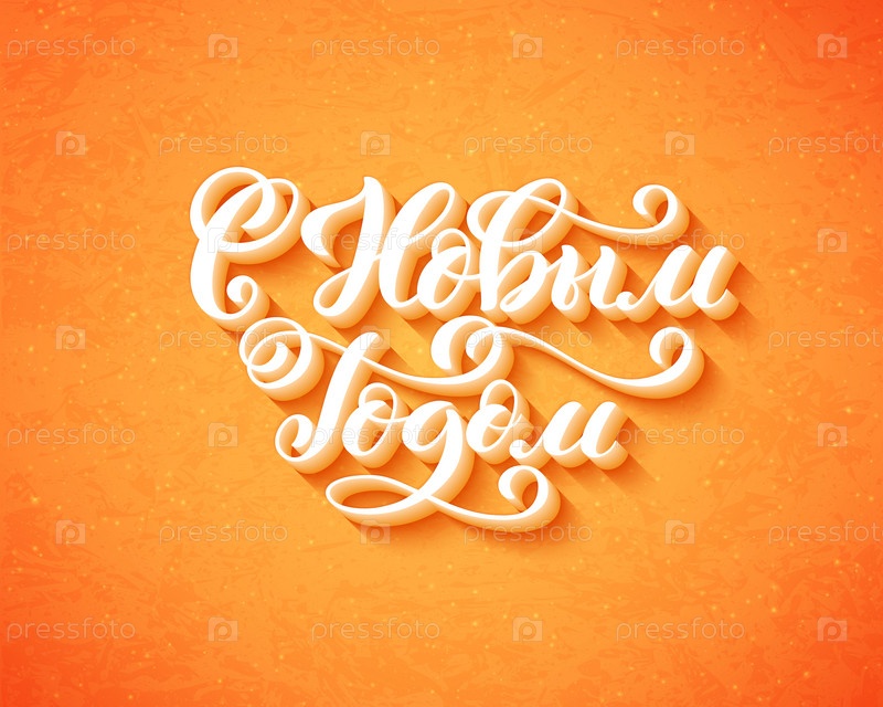 С Новым годом. Праздничная открытка с красиво написанным текстом. Поздравительный плакат.Russian text Merry Christmas. Happy New Year. Template for holiday greeting card with handwritten lettering. Вектор