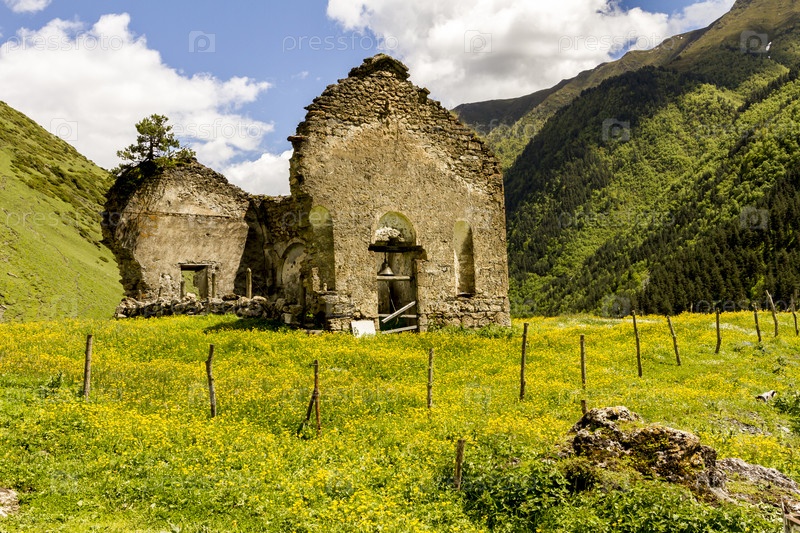 Остатки старой разрушенной грузинской церкви, село Дартло, Тушети, Грузия