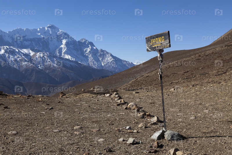 Гималаи, указатель на Джонг, Непал, Нижний Мустанг, заповедник Аннапурны