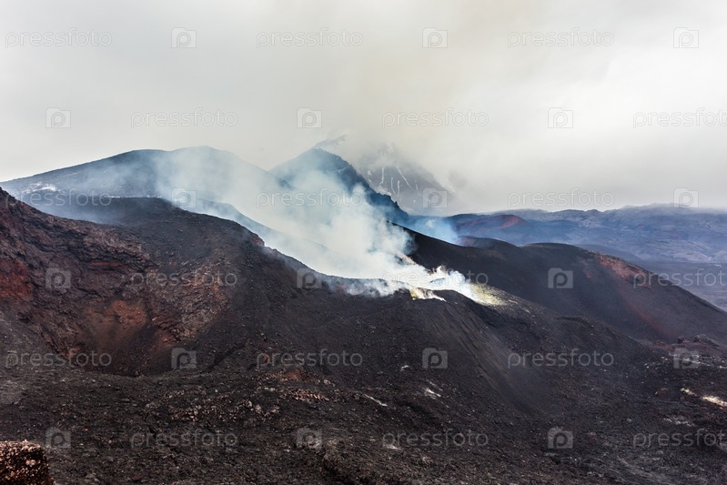 Извержение вулкана. Кратер извергающегося вулкана Толбачик, Камчатка, Россия