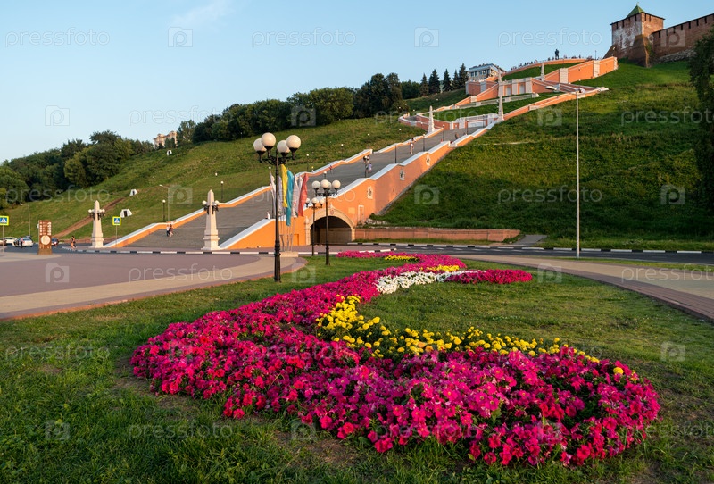 Вид на Чкаловскую лестницу и башню Нижегородского Кремля