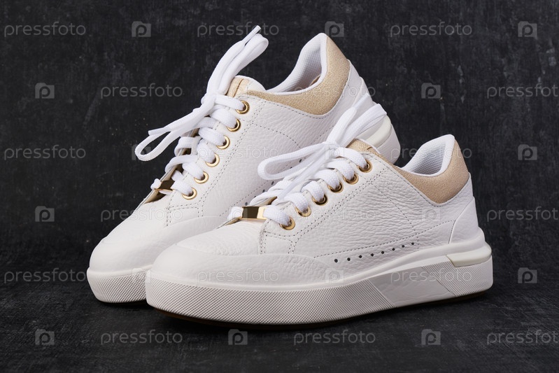 Стильные кожаные кроссовки на темном фоне, повседневная обувь