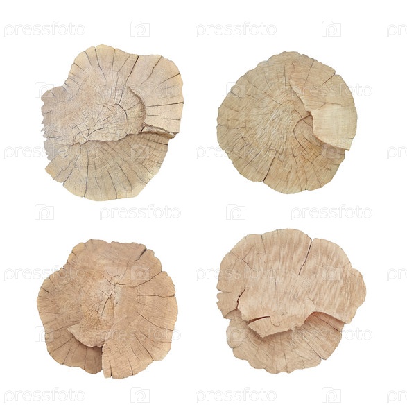 Изогнутые стволы деревьев, изолированные на белом фоне. Деревянная текстура