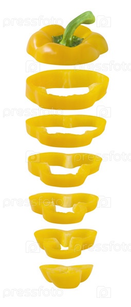Слоистые ломтики желтого перца на белом фоне