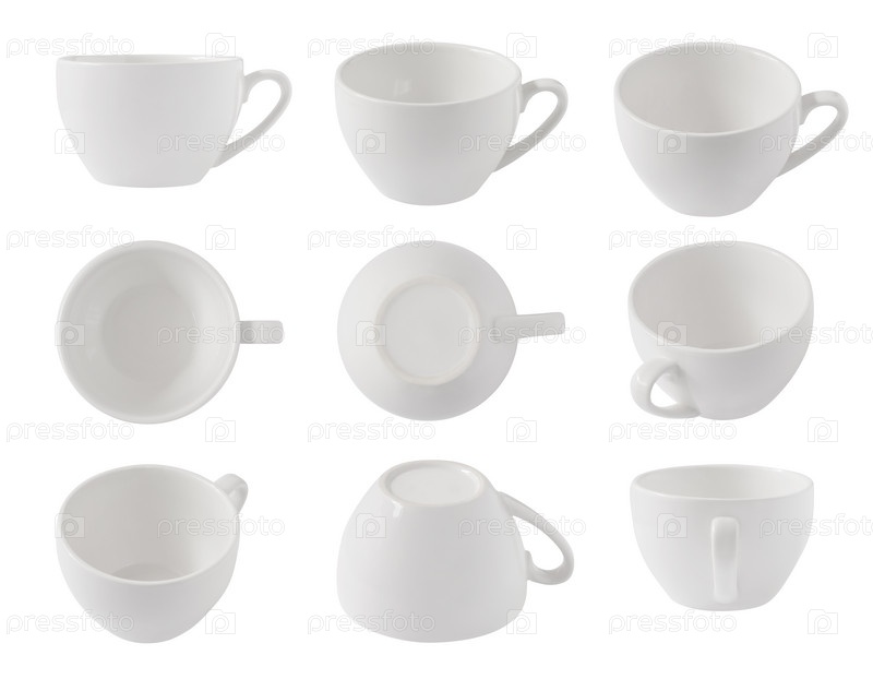 Набор видов сверху и сбоку пустых чашек на белом фоне