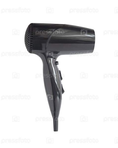 Черный фен, изолированные на белом фоне. Косметический прибор для укладки волос