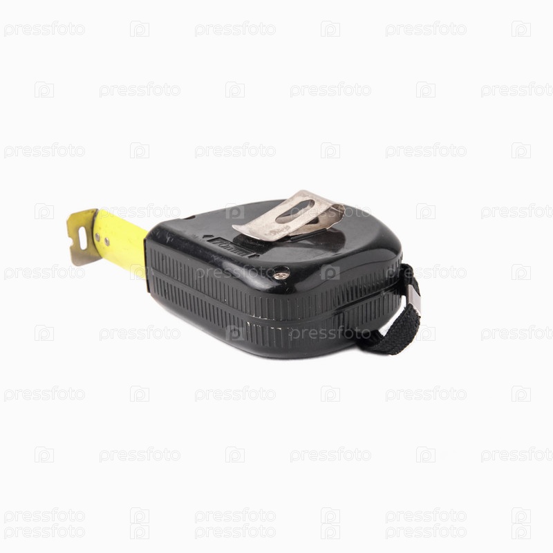 Черная строительная рулетка на белом фоне. Измерительный инструмент