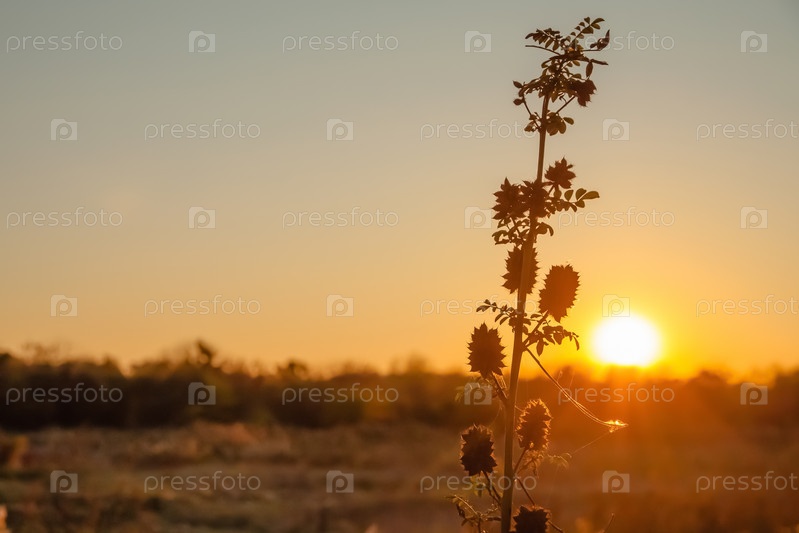 Стебель солодки колючий с соцветиями в лучах заката