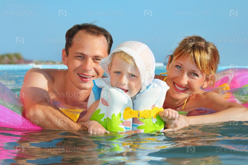 Родители и ребенок в бассейне с морской водой
