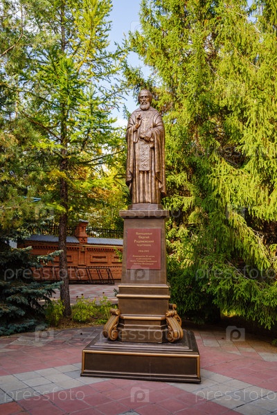 Свято-Троицкий Симеоновский монастырь милосердия, Саракташ, Россия - 1 октября 2020 г.: Памятник преподобному Сергию Радонежскому