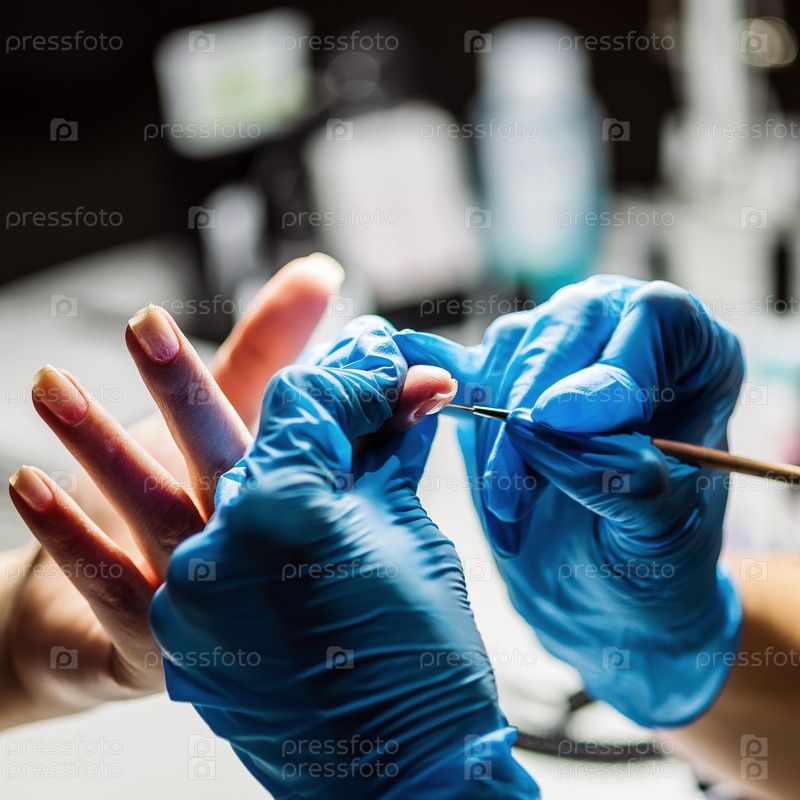 Маникюрный салон, нанесение бесцветного лака на ногти кистью