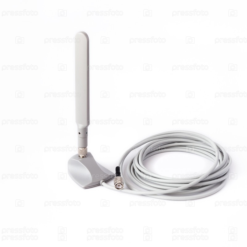 Портативная антенна GSM с кабелем и разъемом на белом фоне