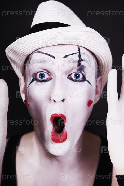 Смешной кричащий мим в белой шляпе