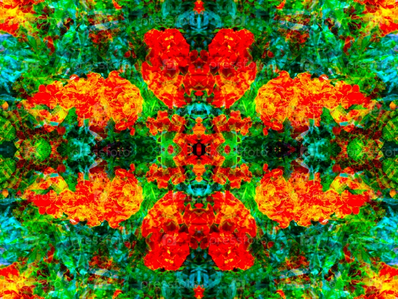 Красивый симметричный узор, составленный в калейдоскопе из элементов живой природы