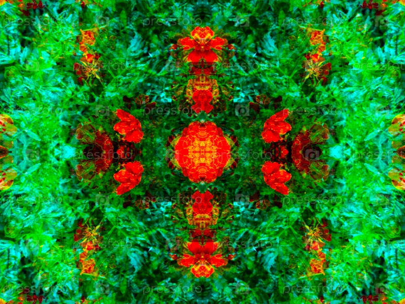 Красивый симметричный узор, составленный в калейдоскопе из элементов живой природы