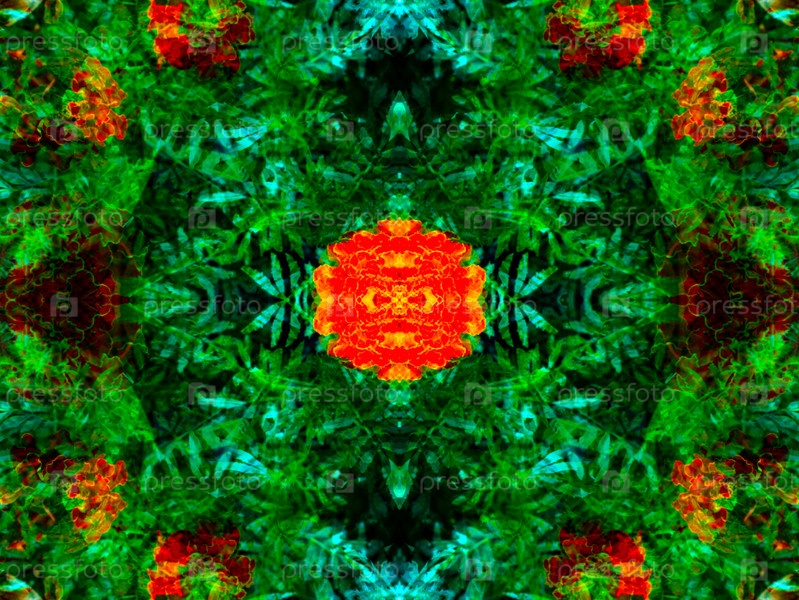 Красивый симметричный узор, составленный в калейдоскопе из элементов живой природы