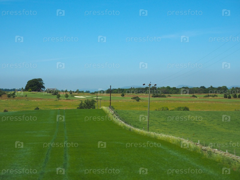 Панорама сельской местности из поезда между Эдинбургом и Глазго