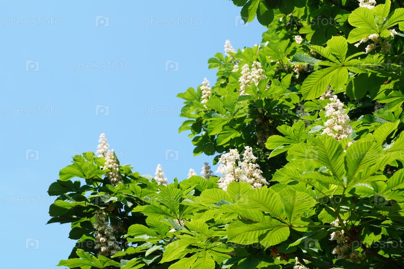 Весенний цвет каштана на фоне голубого неба