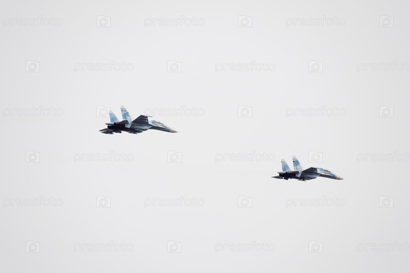 Авиашоу в небе над аэродромом Краснодара, летная школа. Авиашоу в честь Защитника Отечества. Су-35 в небе