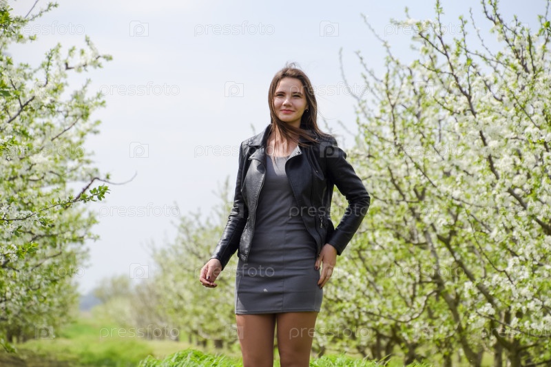 Красивая фея молодая девушка в цветущем сливовом саду. Портрет