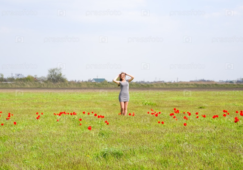 Красивая фея маленькая девочка в поле среди цветов тюльпана