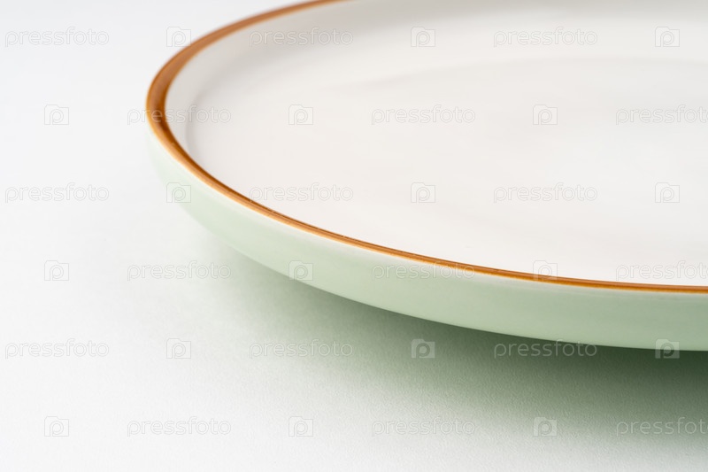 Одна керамическая зеленая тарелка на белом фоне
