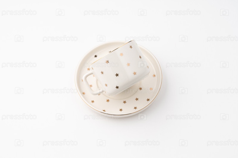 Керамическая чашка с блюдцем на белом фоне