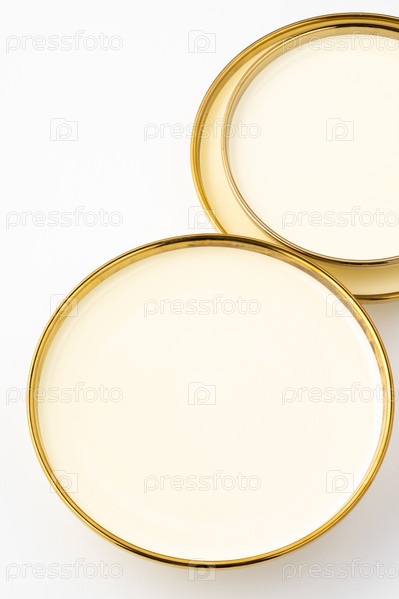 Золотая роскошная керамическая посуда на белом фоне