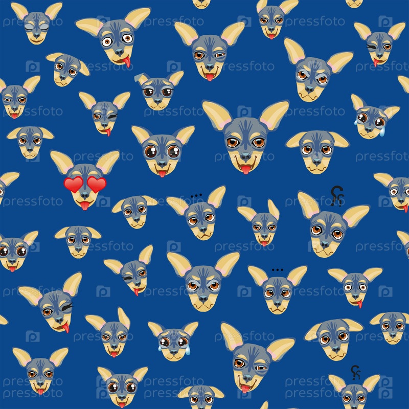 Бесшовный рисунок векторных наклеек, смайликов с милой собакой