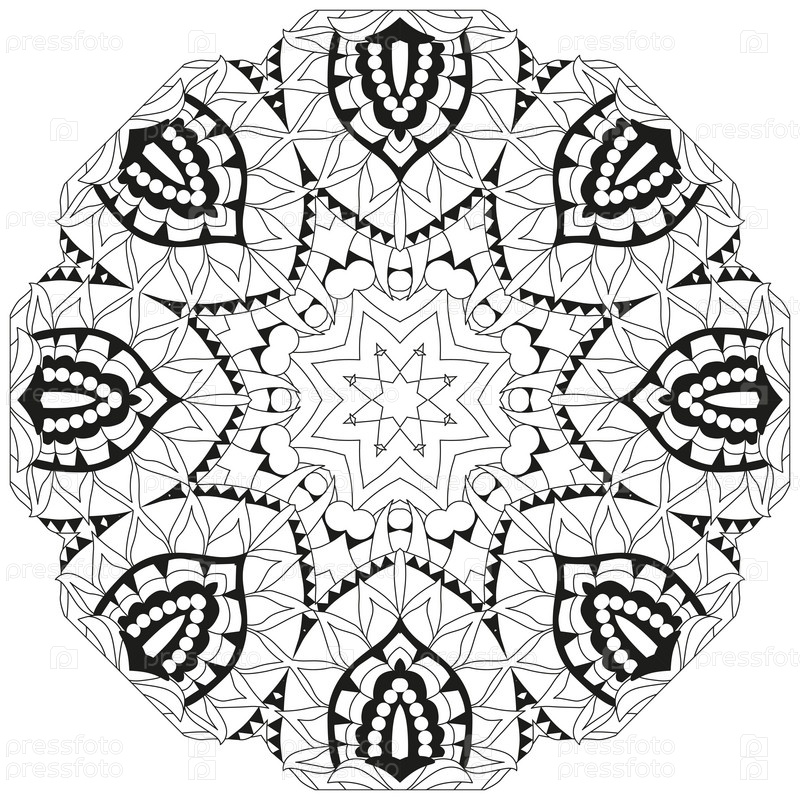 Круговой орнамент ручной работы для раскраски страницы
