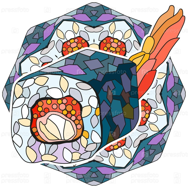 Ручно нарисованные суши-зентагле в круглом орнаменте для футболок и других украшений