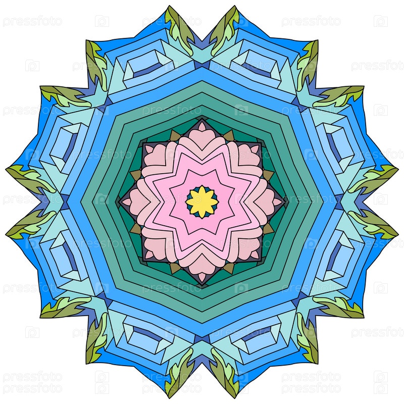 Декоративный круглый орнамент. Необычная форма цветка. Восточный вектор, схемы антистрессовой терапии. Переплетение элементов дизайна. Вектор логотипов йоги