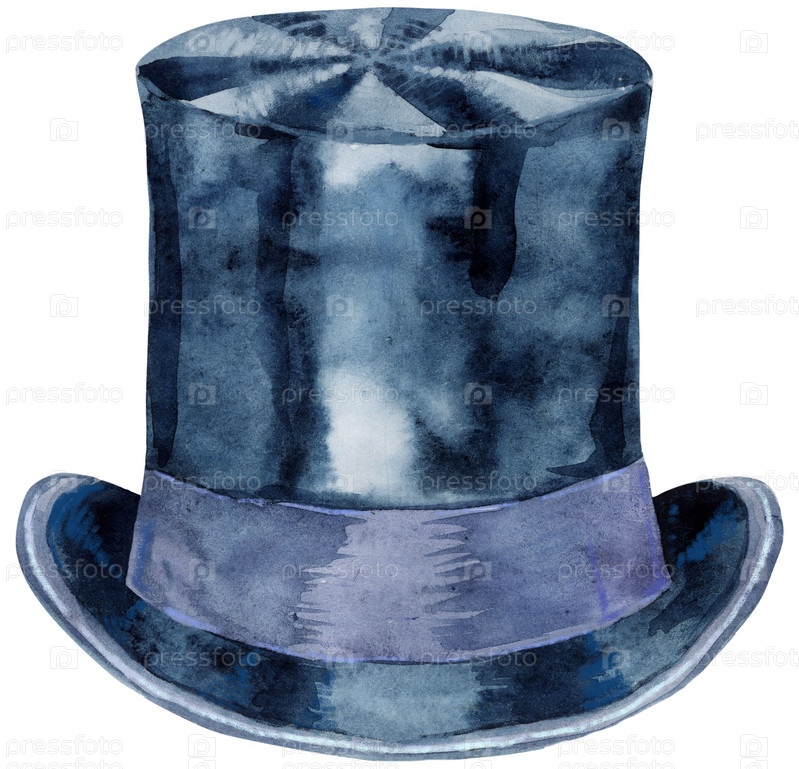 Акварельная иллюстрация в черной шляпе. Для дизайна одежды