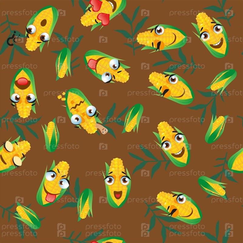 Бесшовный фон овощной кукурузы. Смешные милые лица персонажей