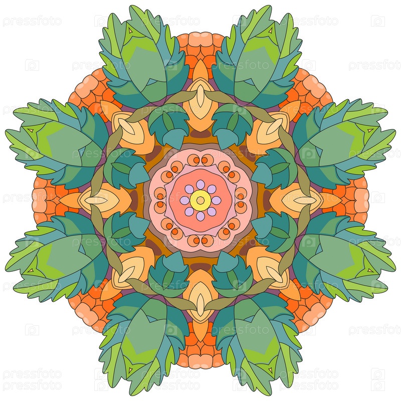 Декоративные круглые украшения. Необычная форма цветка. Восточный вектор, схемы антистрессовой терапии. Переплетение элементов дизайна. Вектор логотипов йоги