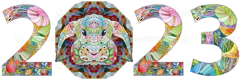 Нарисованный вручную кролик номер 2023 для футболки и других украшений