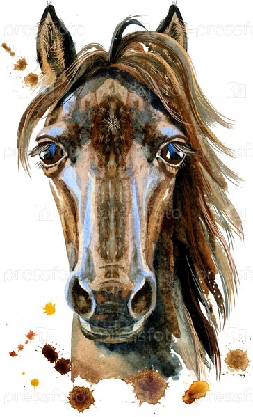 Персонаж гороскопа головы лошади изолирован на белом фоне. Акварельная иллюстрация козы