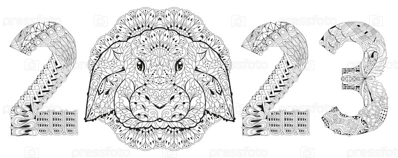 Zentangle стилизованный кролик номер 2023. ручной рисунок вектора ожерелья для покраски