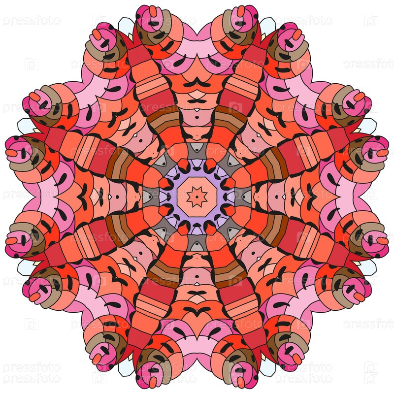 Декоративные круглые украшения. Необычная форма цветка. Восточный вектор, схемы антистрессовой терапии. Переплетение элементов дизайна. Вектор логотипов йоги
