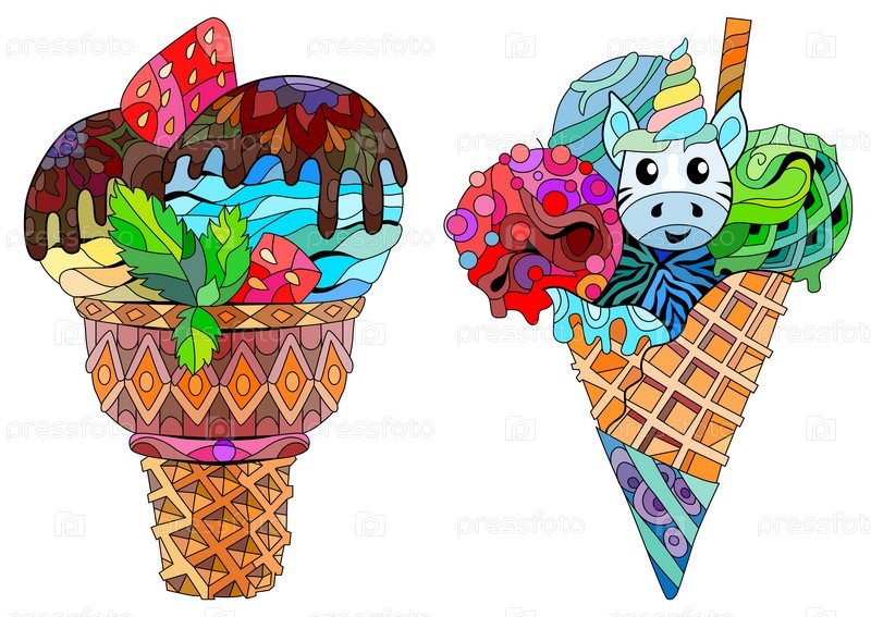 Набор мороженого. Цветочная, декоративная, сладкая десертная композиция Цвет на белом фоне