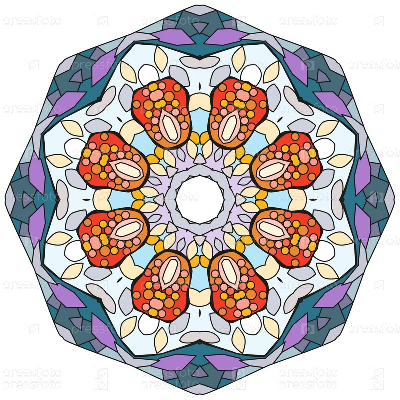 Декоративные круглые украшения. Необычная форма цветка. Восточный вектор, схемы антистрессовой терапии. Переплетение элементов дизайна. Вектор логотипов йоги