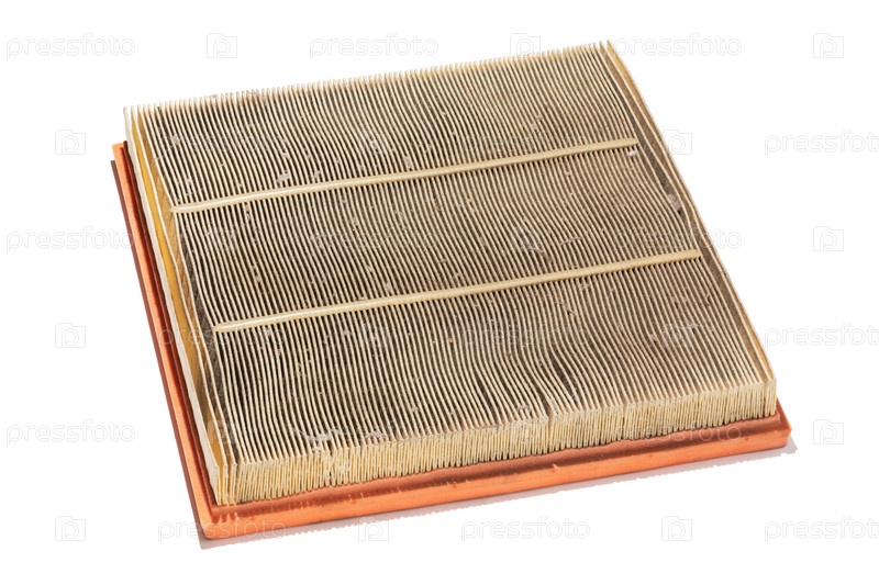Старый автомобильный воздушный фильтр на белом фоне