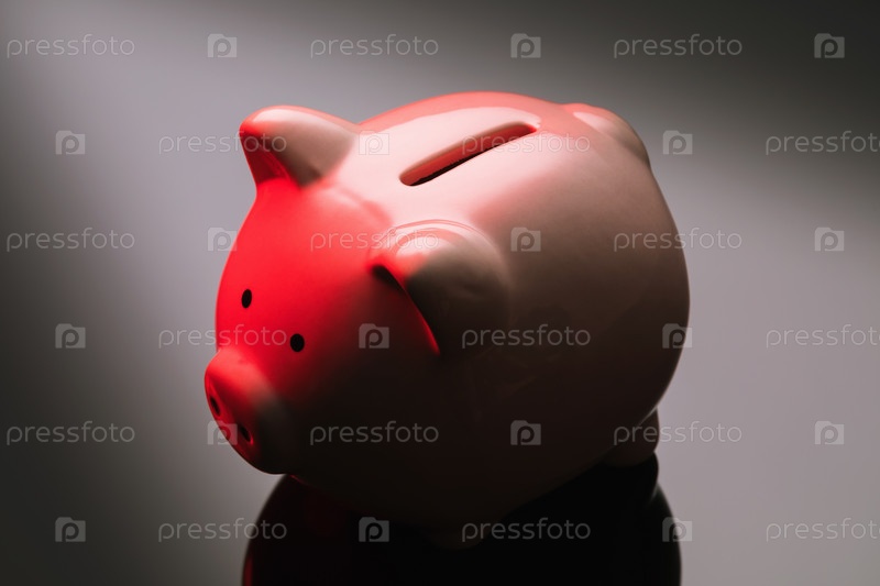 Керамическая копилка на градиентном фоне, освещенная красным светом, крупным планом