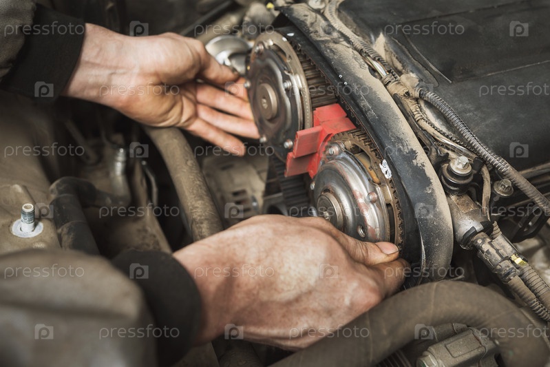 Человек самостоятельно меняет ремень ГРМ в легковом автомобиле