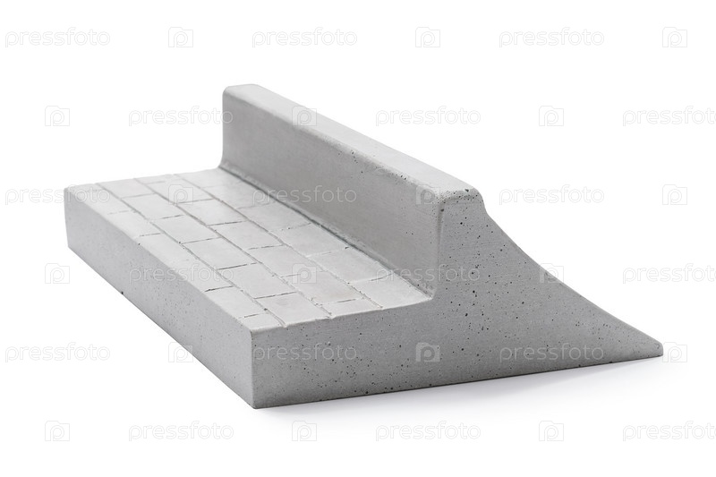 Серая гипсовая рампа с двумя сторонами для грифинга, изолированная на белом фоне