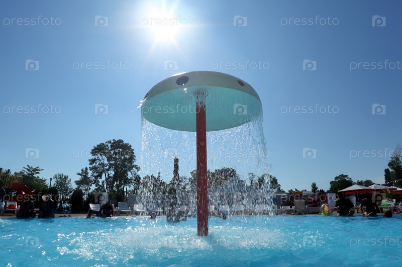 Фонтан в виде гриба в бассейне под открытым небом