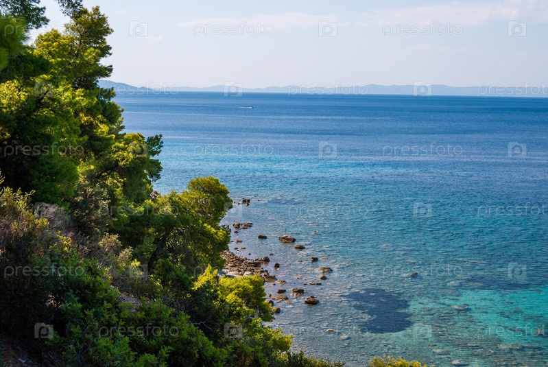 Вид на море через сосновый лес, Халкидики Греция